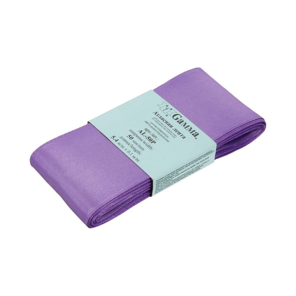 Лента атласная 50 мм ( 2 ") "Gamma" ФАСОВКА 5.4 м №027 св.лиловый