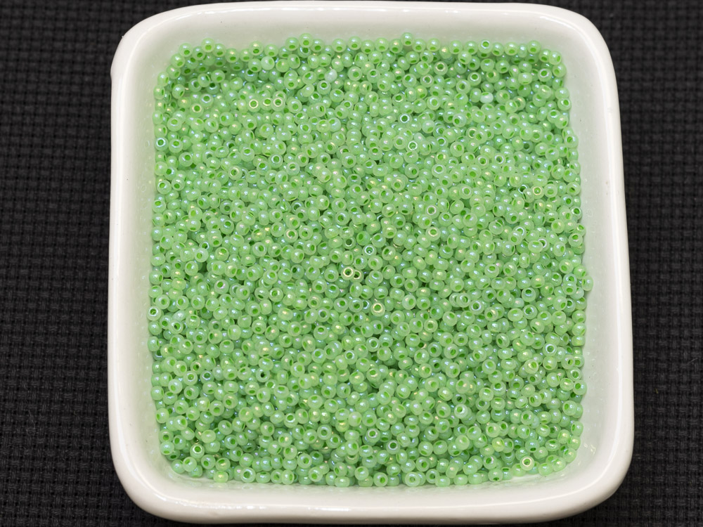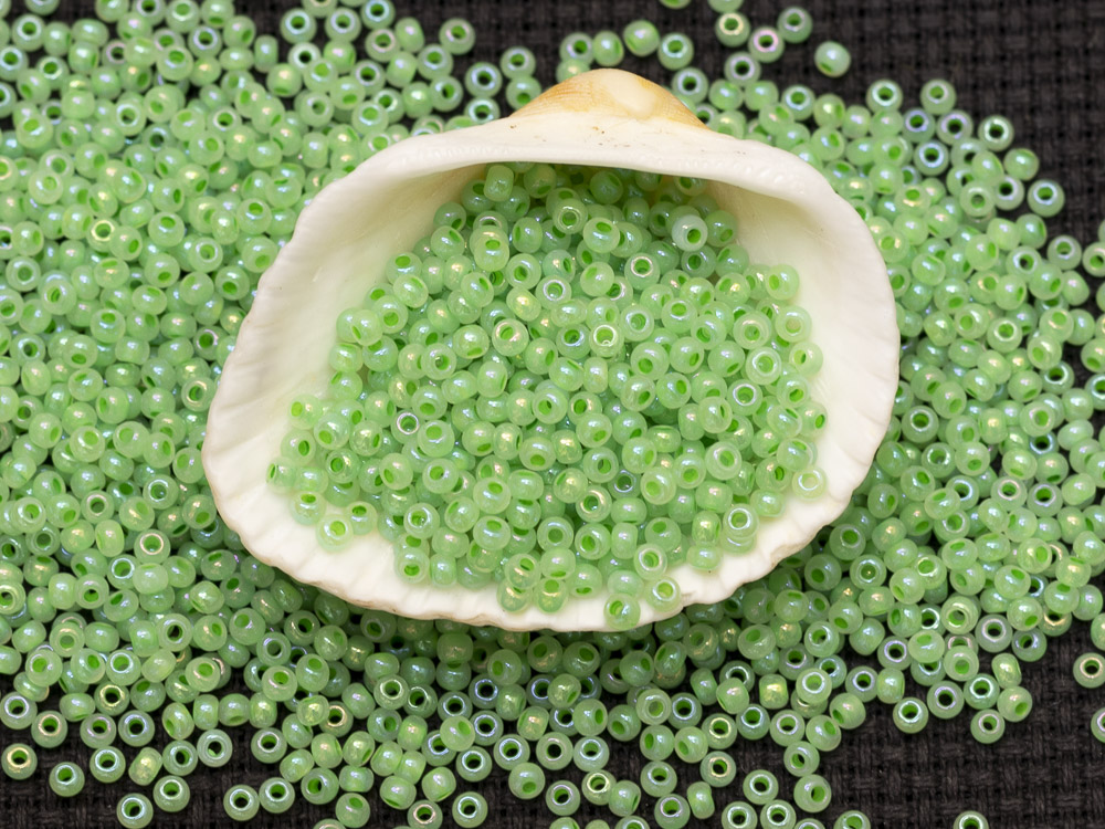 Бисер Чехия круглый 10/0 500 г 57556 салатовый непрозрачный радужный