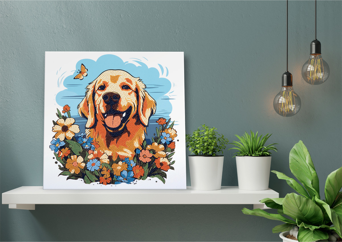 Кристальная ( алмазная) мозаика " ФРЕЯ" ALBP- 259 постер " Собачка в цветах" 30 х 30 см