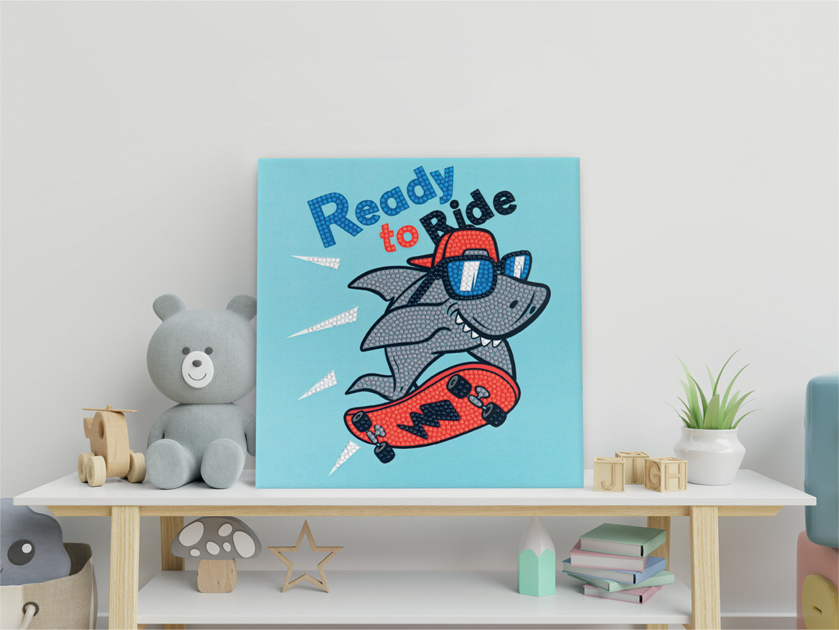 Кристальная ( алмазная) мозаика " ФРЕЯ" ALBP- 317 постер " Акула на скейте" 20 х 20 см