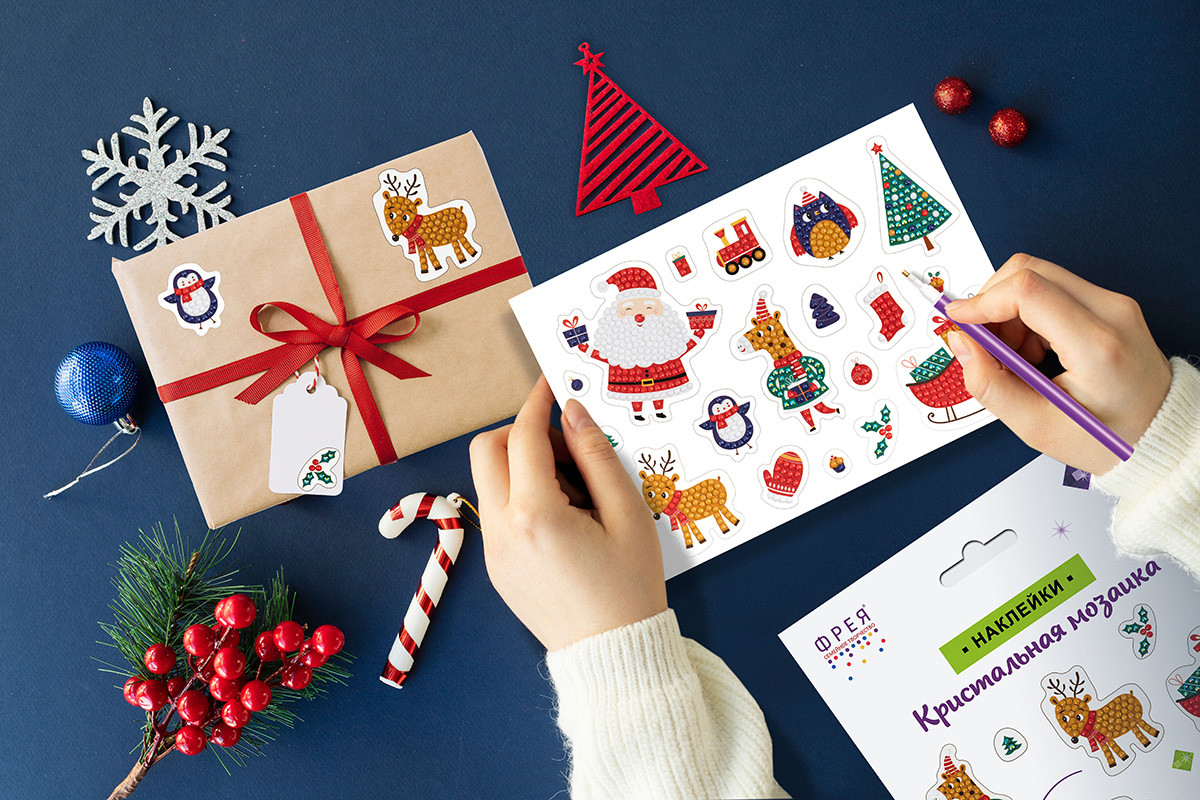 Кристальная ( алмазная) мозаика " ФРЕЯ" ALVN- 135 наклейки " Новогодние" 19. 5 х 14 см