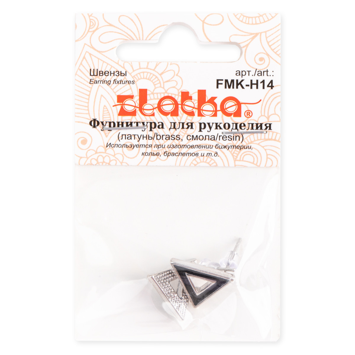 Швензы ТМ " Zlatka" арт. FMK- H14 Аккуратные швензы - гвоздикитреугольной формы, прекрасно подойдут для создания Ваших уникальных сережек. Серьги минимализм подходят для повседневной носки, а также эффектно дополнят нарядный, вечерний, праздничный или свадебный образ. Швензы имеют креплеие для подвесок, изготовлены из латуни, не темнеют, не окисляютя. Размер: 12х14 мм. Количество в упаковке: 2 шт. Сообщить о неточности в описании